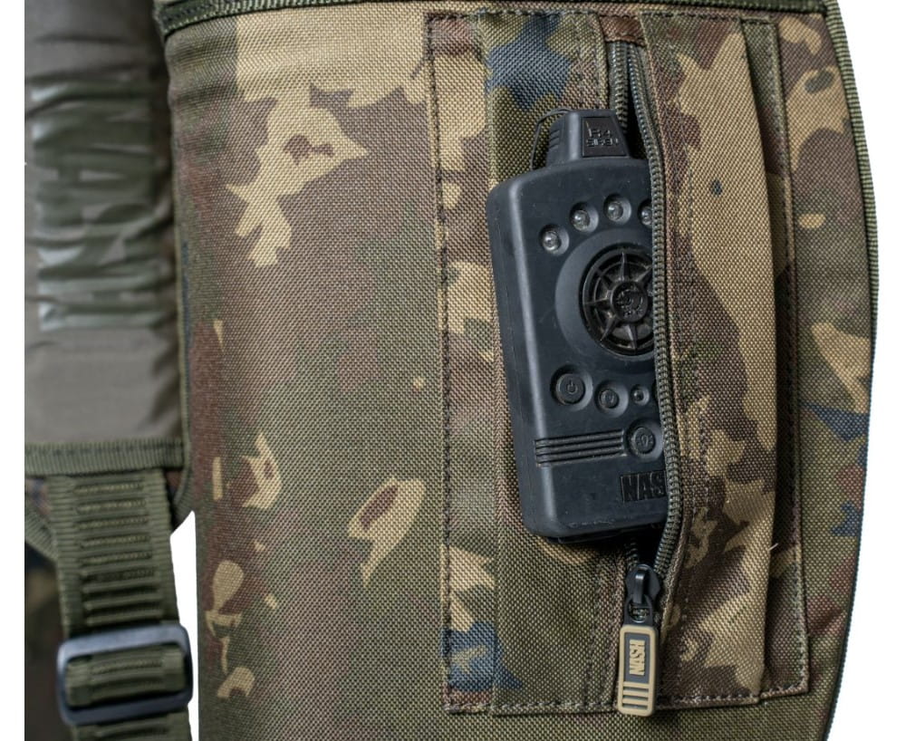 - Poche extérieure zippée pour les plombs ou le récepteur