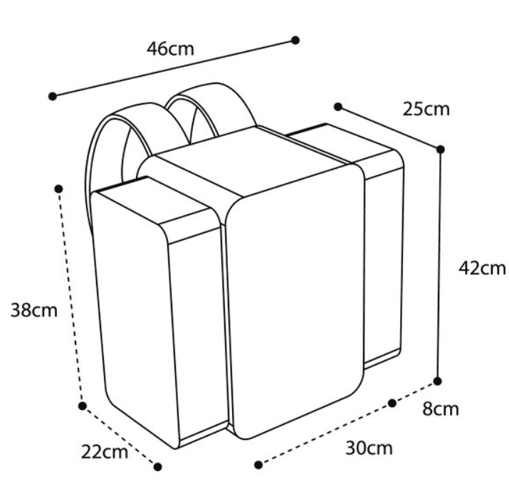 - Štirje kompresijski trakovi za dodaten prostor za shranjevanje, npr. za podloge za odpenjanje rib ali oblačila